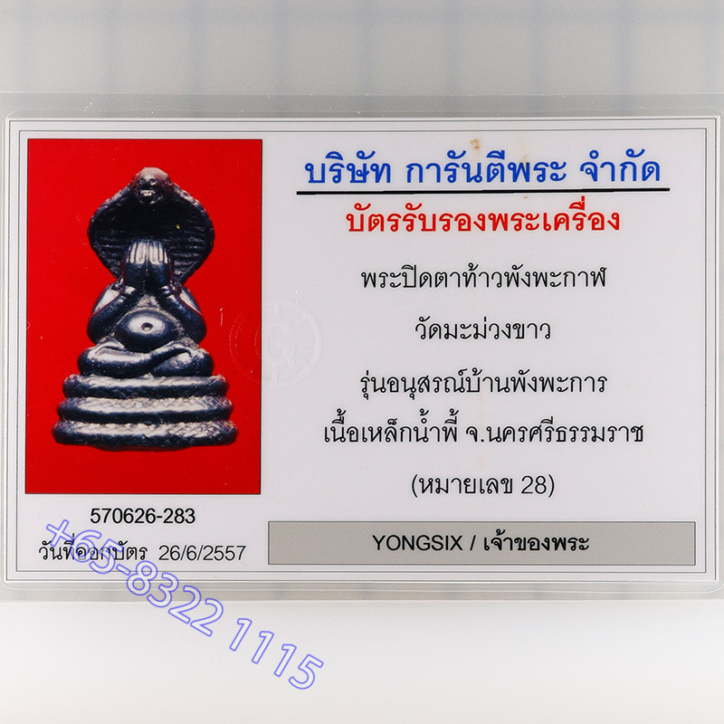 • Gold Code S/n:28 Ajahn KhunPan 2546 Phra Pidta LekNamPee 2.8cm G-Pra Cert