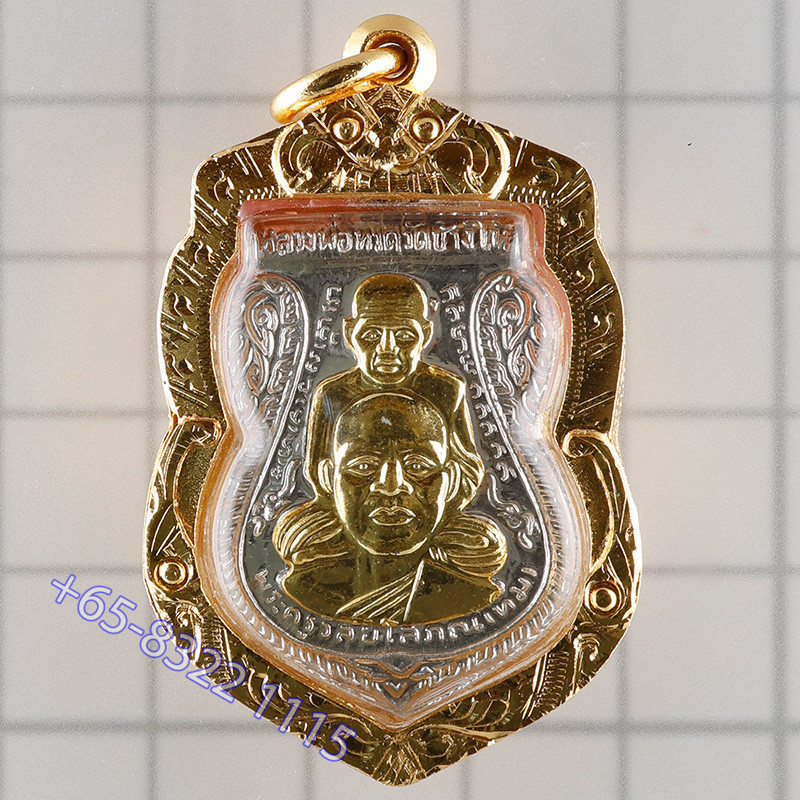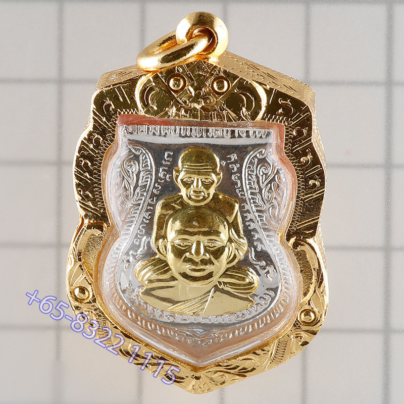 龙婆托银金面佛牌,2558大法会,瓦昌海,G-Pra 认证,意大利金壳